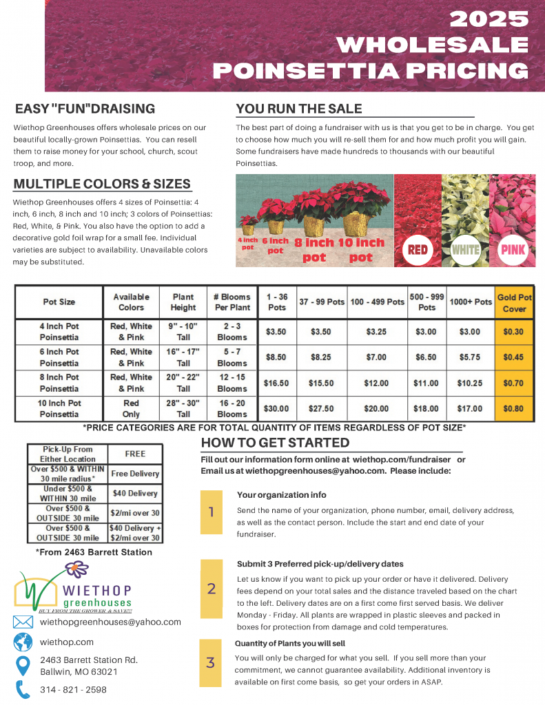 Wiethop Greenhouses Inc. is proud to offer your organization an easy-to-organize fundraiser with better profit potential than most other fundraisers. We have been helping St. Louis Area organizations cultivate successful fundraisers for over 10 years, and all proceeds stay within our community.